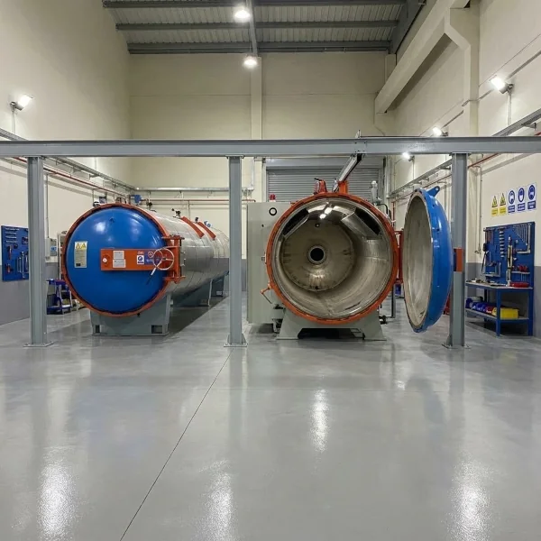 اتوکلاوهای صنعتی با ظرفیت‌های مختلف برای پخت تایرهای روکشی با کنترل دقیق دما و فشار.